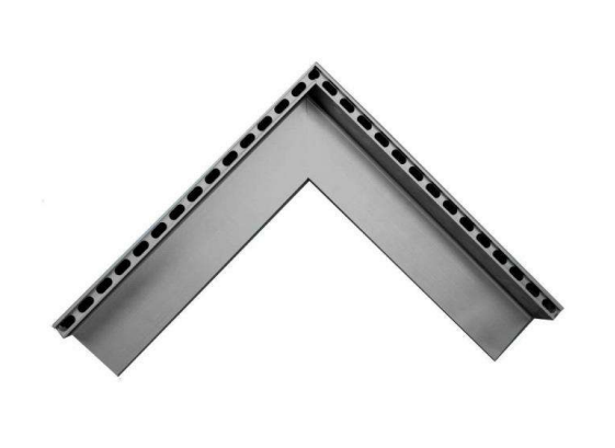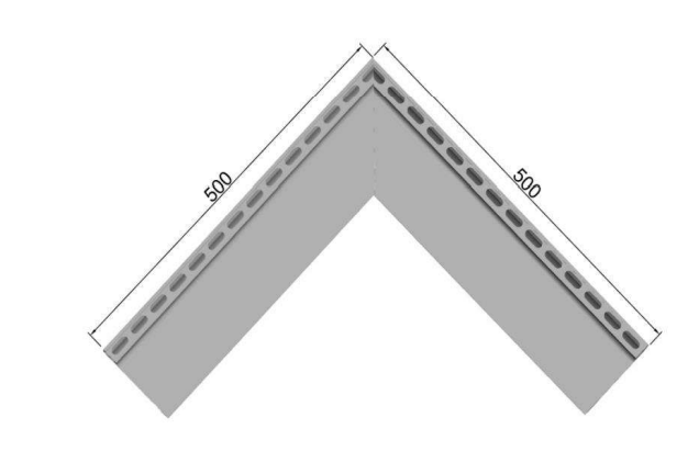 - uitwendige hoekverbinding uit geëxtrudeerd aluminium met doorlopende inloopsleufjes van10x25mm in de lengterichting. Door deze methode krijgt men geen visuele onderbreking.
